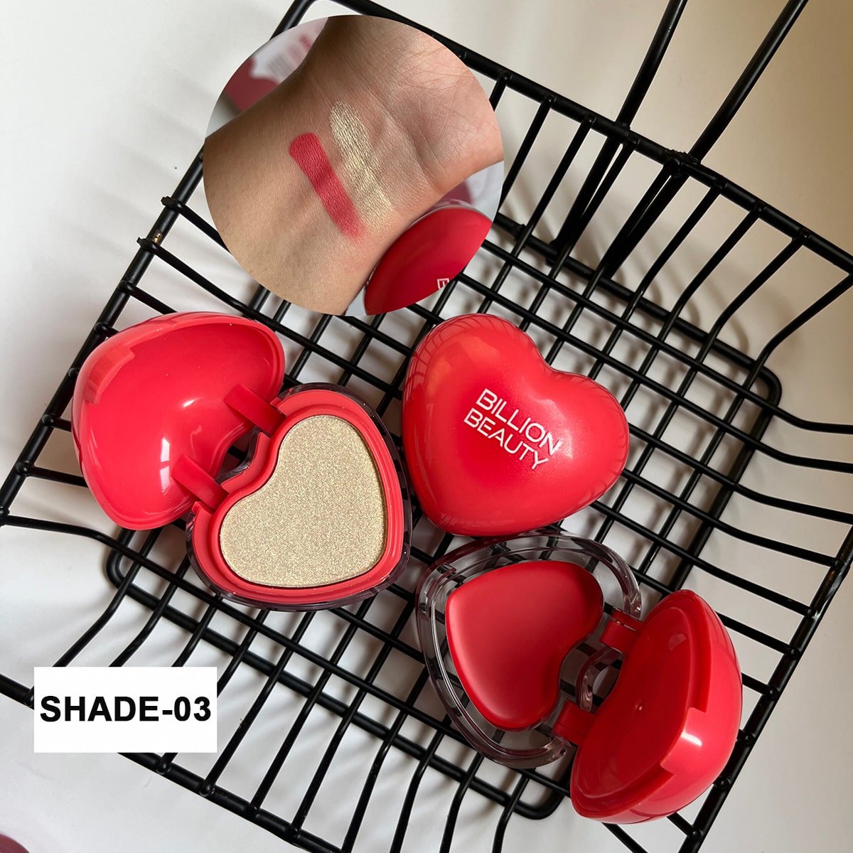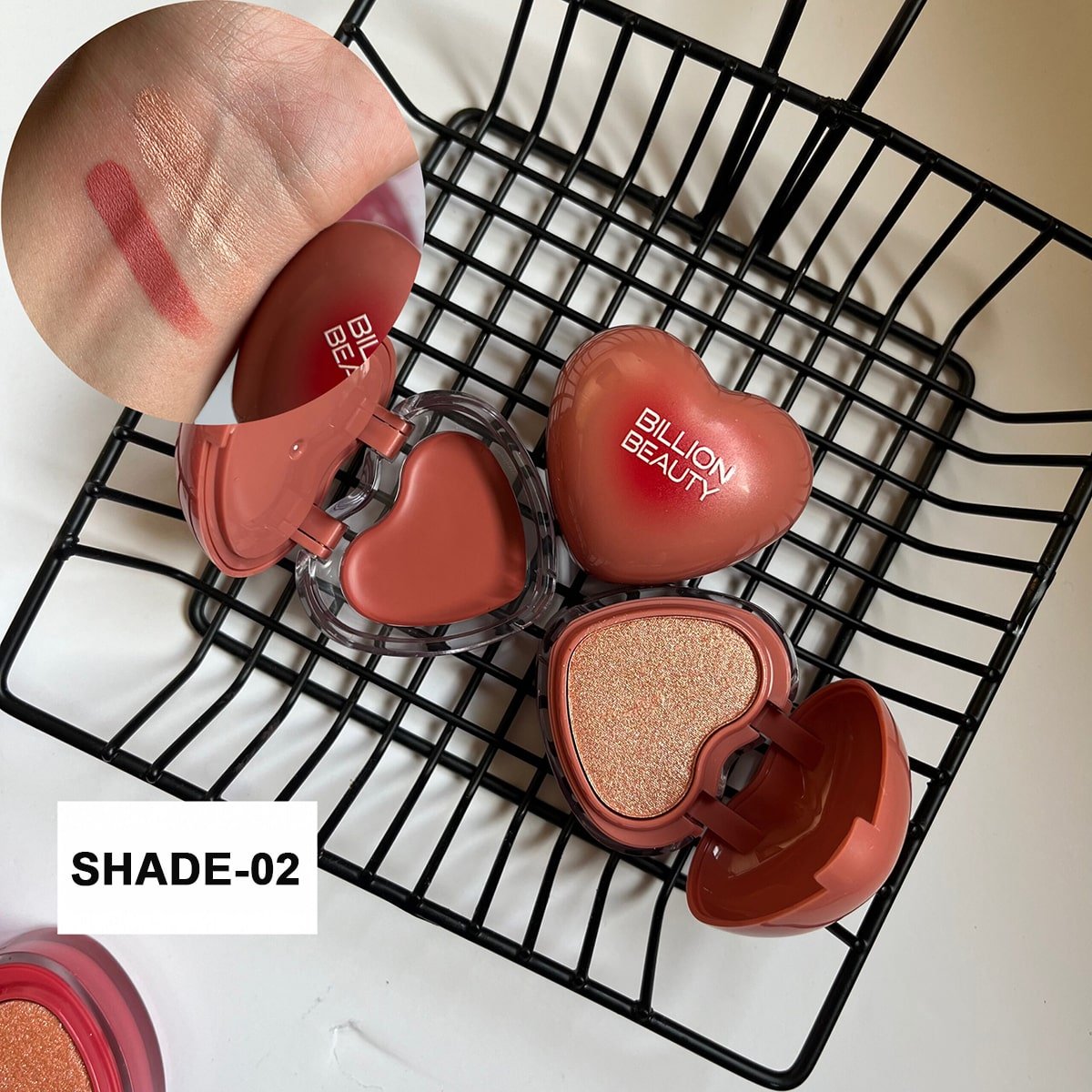 The Billion Beauty Blush-On & Highlighter is your go-to palette for a natural glow and radiant complexion. The blush brings a fresh, youthful flush to your cheeks, while the highlighter adds a soft shimmer that enhances your best features. Its smooth, blendable texture ensures effortless application and a flawless finish that lasts all day.
