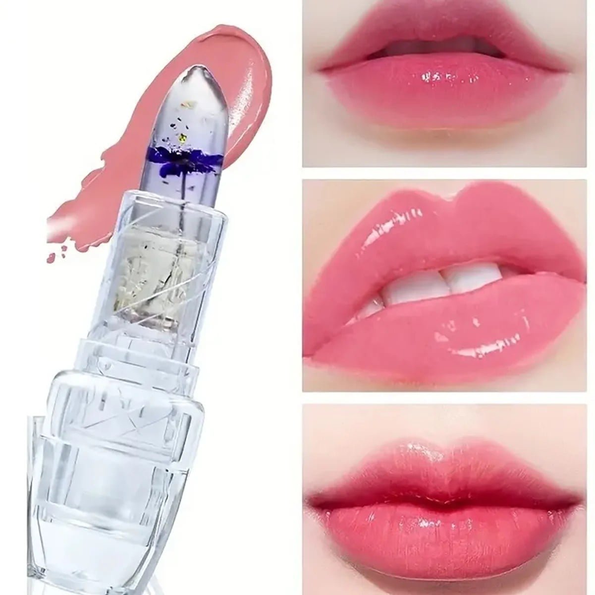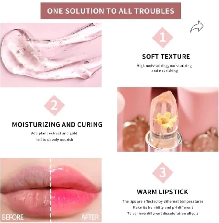 Introducing our Waterproof Flower Lipstick! This high-glossy finish lipstick is formulated with real flower extracts, giving it a unique transparent color changing effect. And not to worry, it’s also waterproof! Make a statement with our Flower Jelly Lipstick.