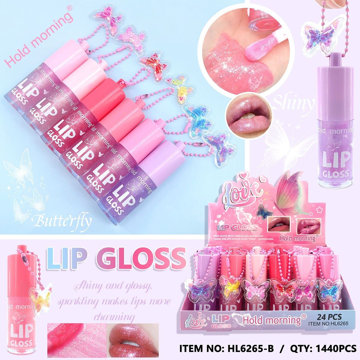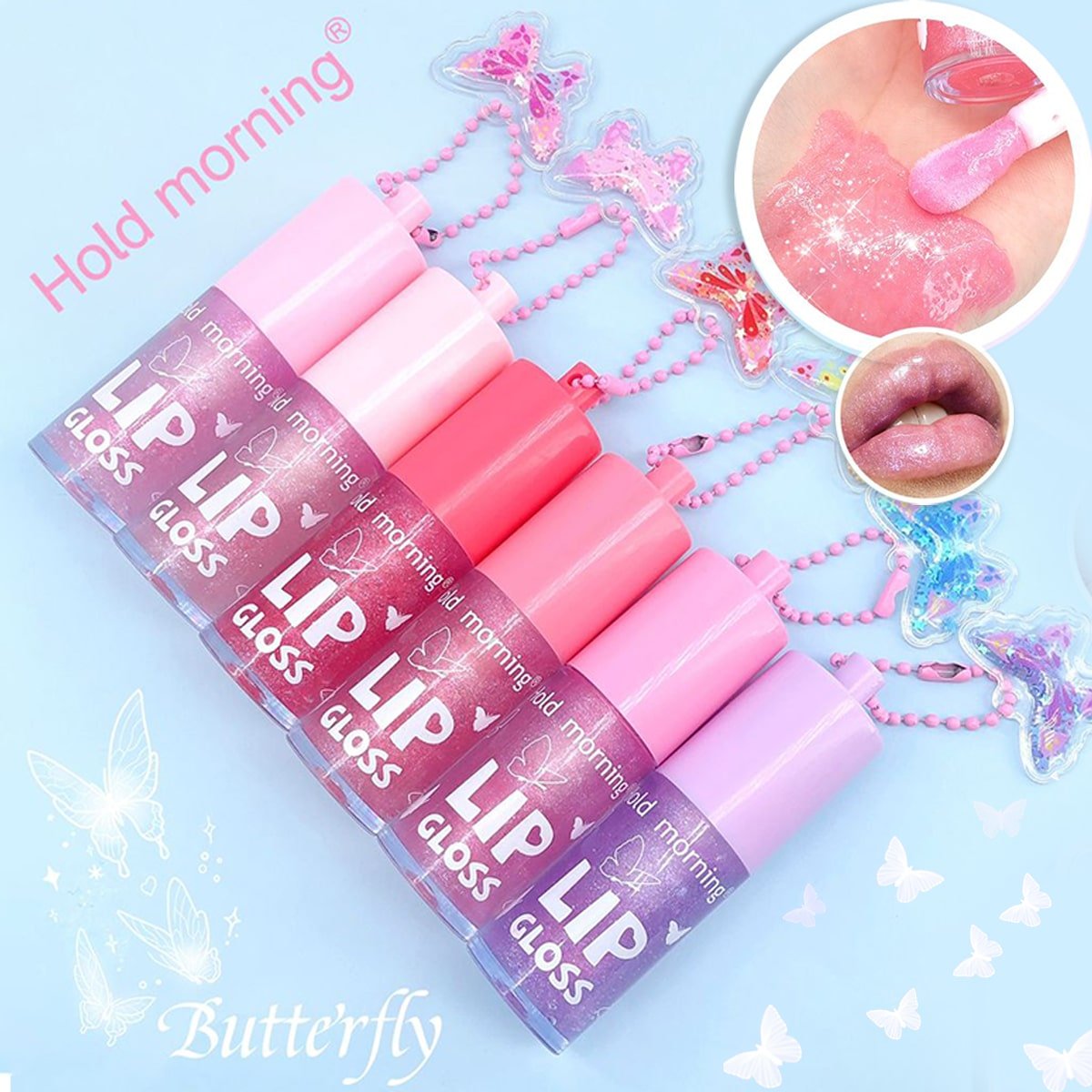 Add instant shine and hydration to your lips with our Butterfly Keychain Shiny Lip Gloss. This ultra-glossy formula deeply moisturizes the lips and gives a smooth, glass-like finish while helping reduce dryness and discoloration.
