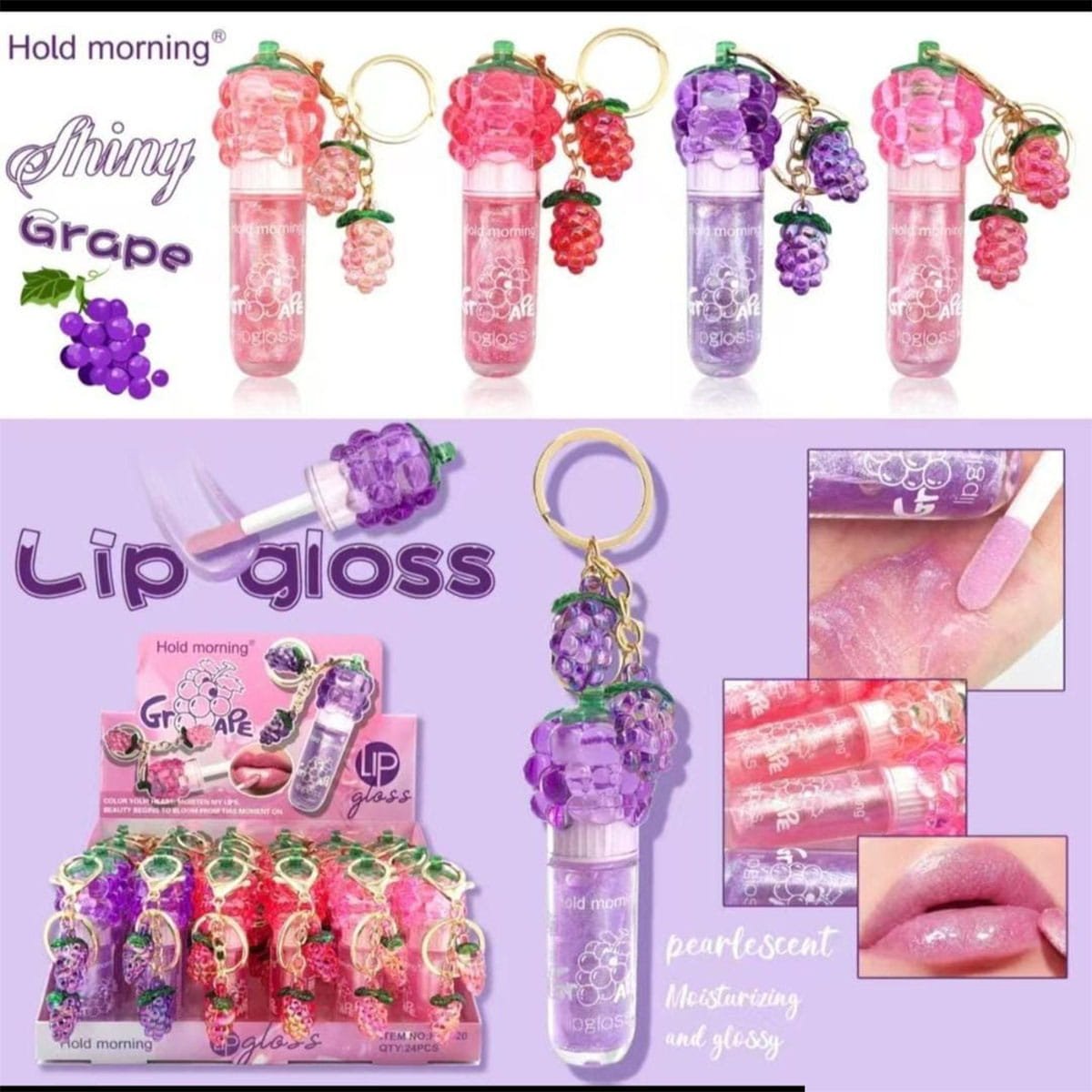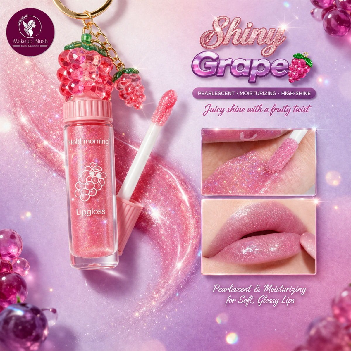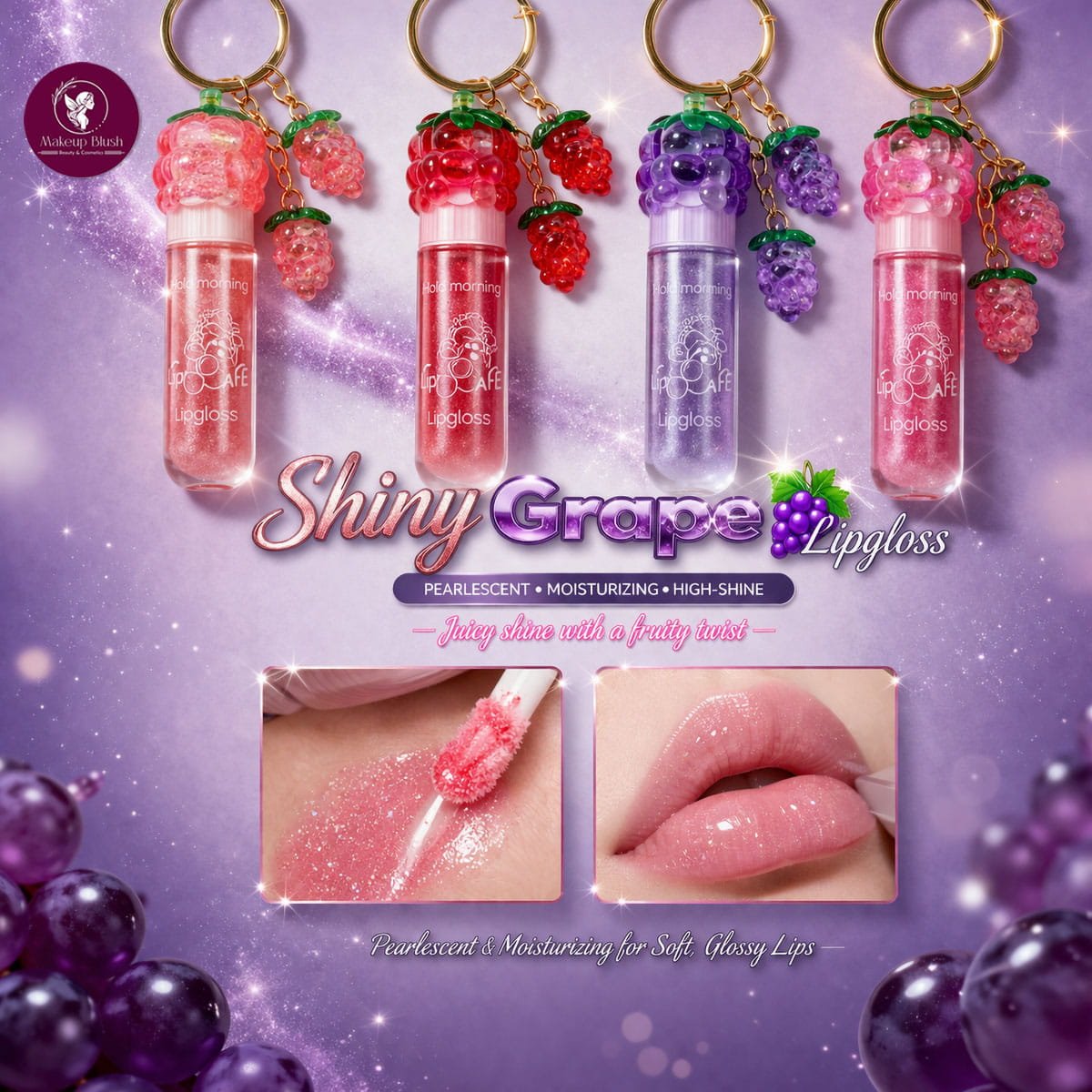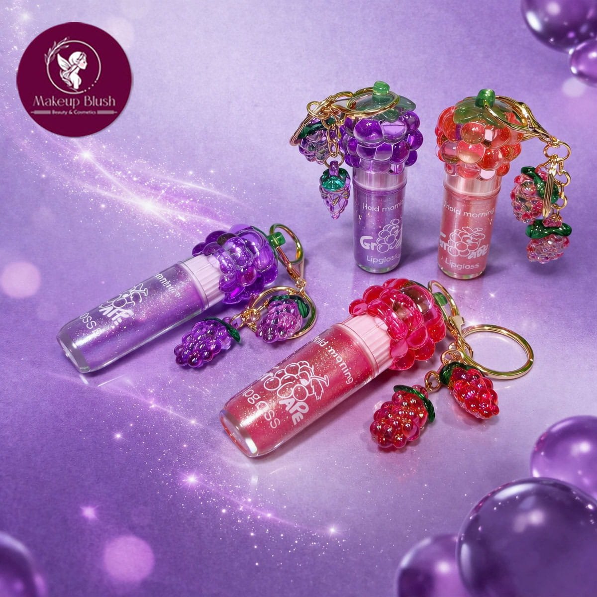 The adorable grape-inspired design with a double charm keychain adds a playful yet trendy touch, making it not just a beauty essential but also a stylish accessory. Whether you’re on the go or need a quick shine boost, this compact gloss is always within reach.