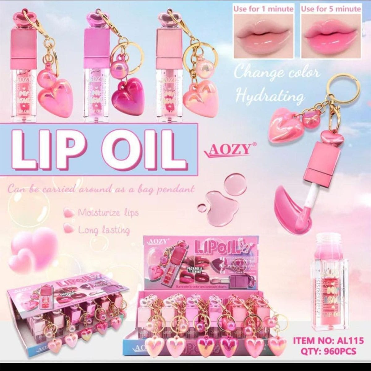 This adorable lip oil comes with a heart charm keychain design, making it perfect to carry anywhere. It hydrates your lips while giving a natural glossy tint ✨