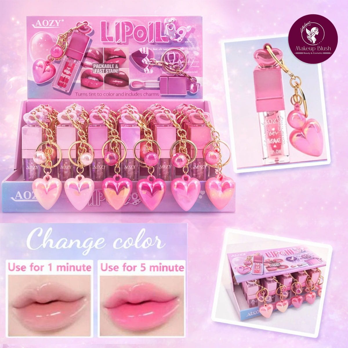 Heart Charm keychain Color Changing Lip Oil (Moisturizing Gloss)