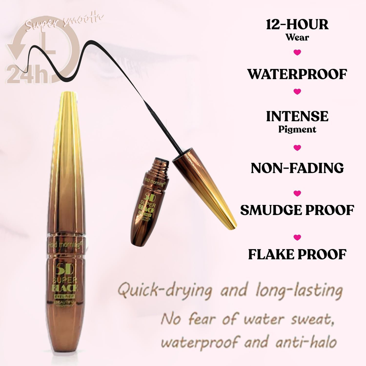 Create sharp, bold, and perfectly defined eyes with HoldMorning 5D Super Black Eyeliner. This quick-drying eyeliner delivers an intense jet-black finish with a smooth, precise stroke in just one swipe.