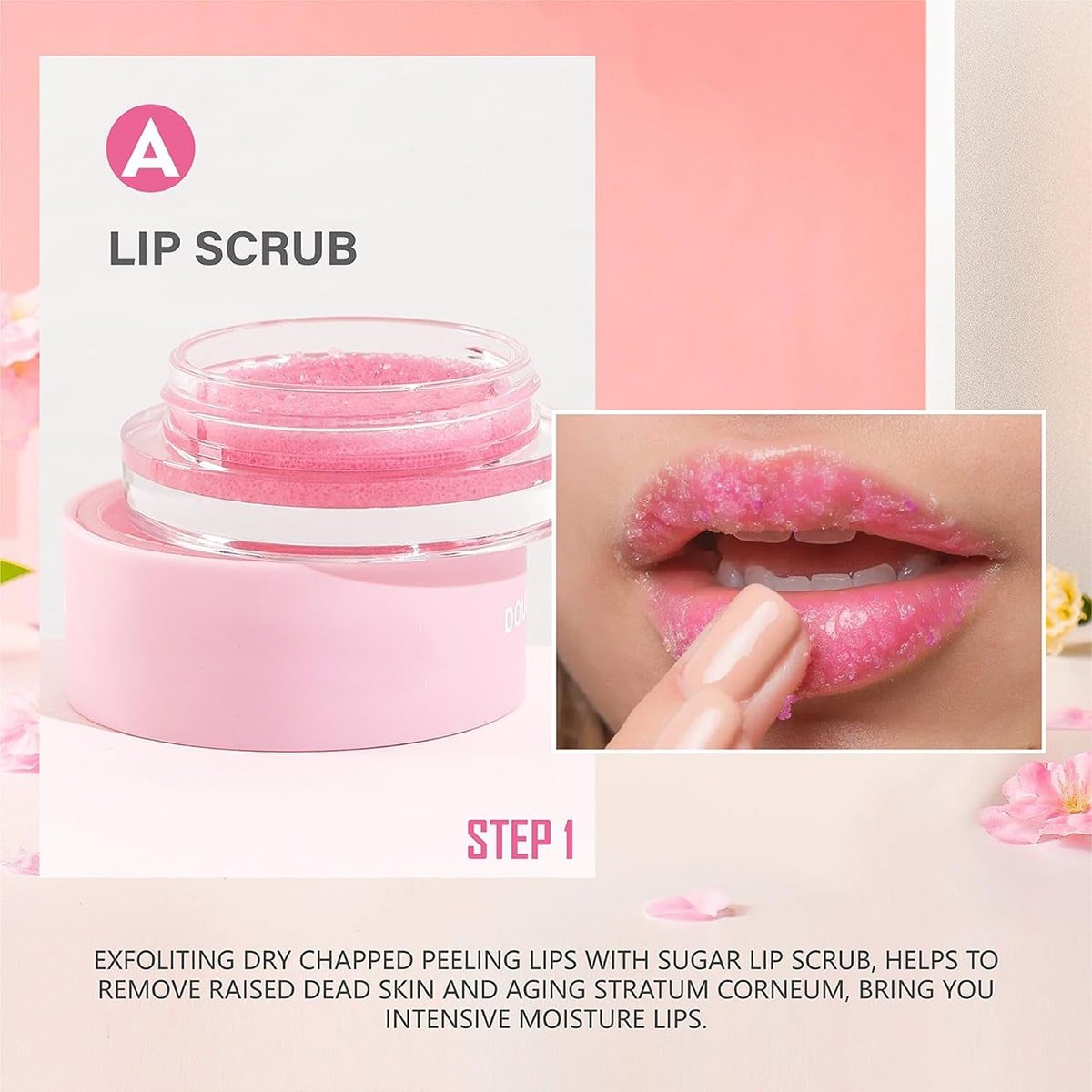 - 💋LIP SCRUB — Our sugar lips scrub can exfoliates dead skin cells easily, massage a small amount of lip scrub onto lips, rinse of and pat dry, it will exfoliates and lift away dead skin cells and cleanse for moisturized, smooth lips, increase lips hydration, an alternative to exfoliating lips balm.