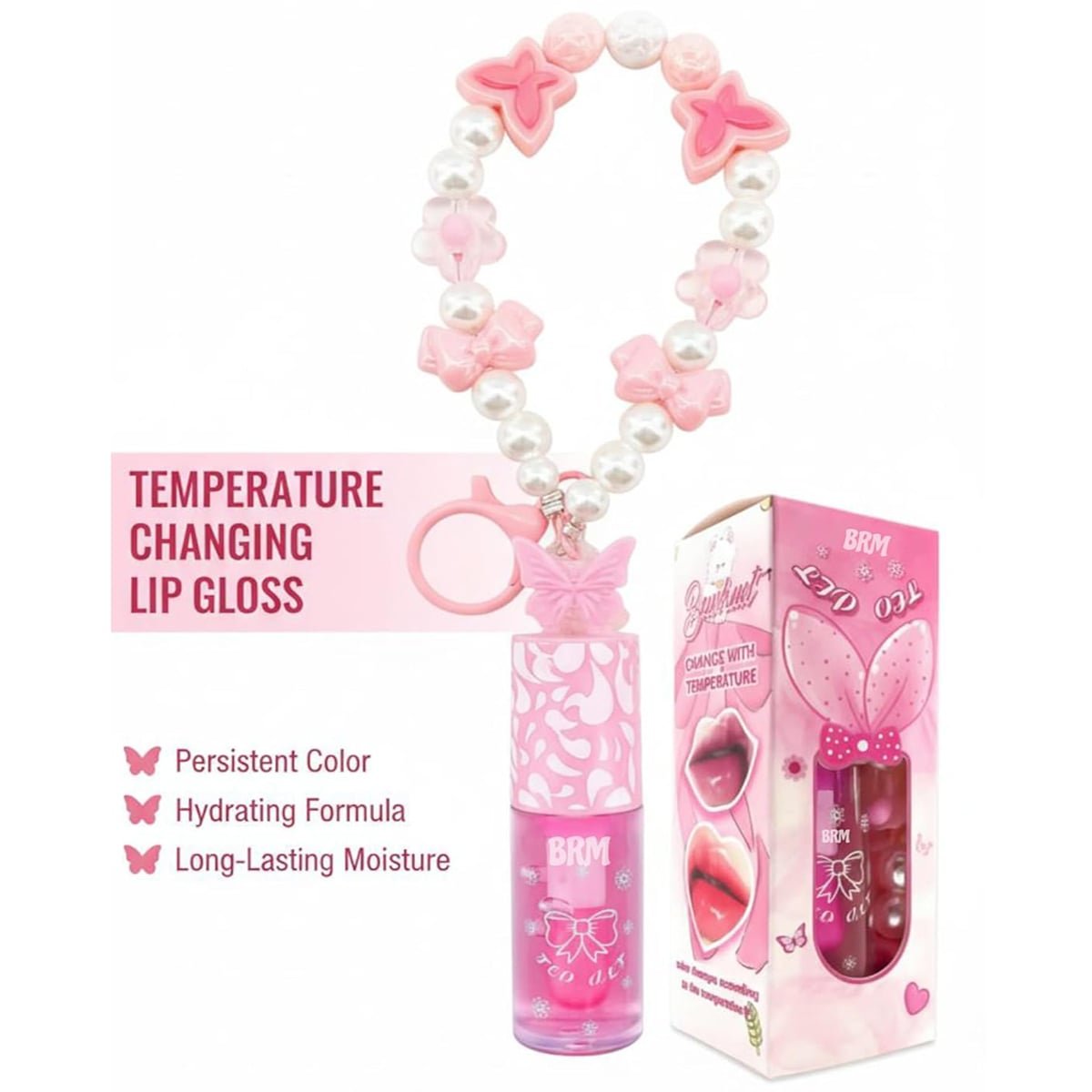 This hydrating, glossy lip tint comes with a super cute long beaded butterfly keychain, making it ideal for teens, girls, and anyone who loves aesthetic accessories.