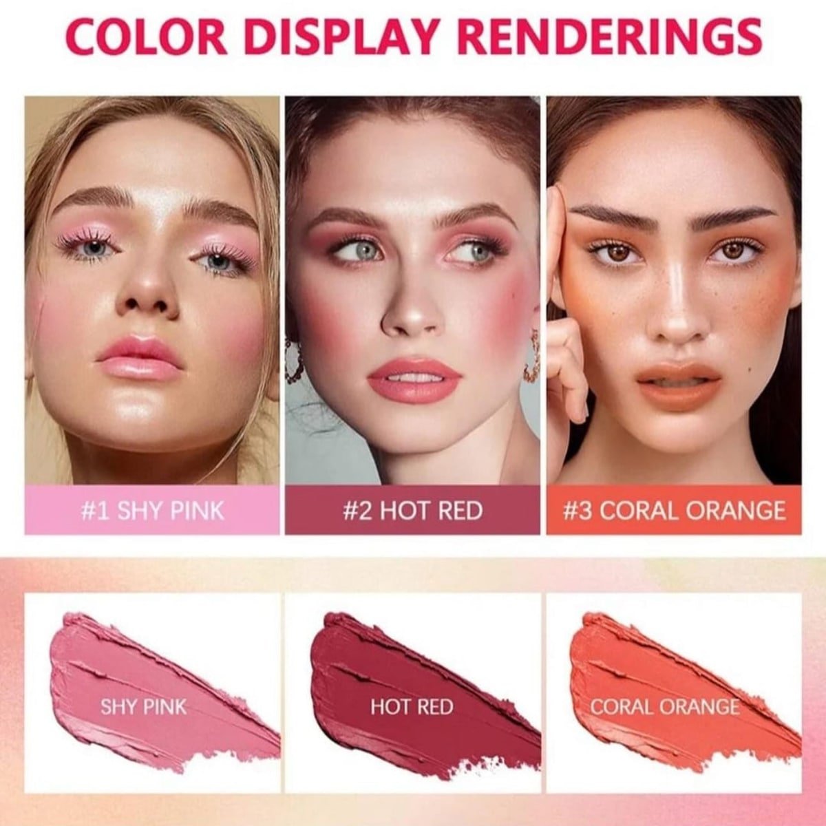 SHY PINK ,HOT RED ,CORAL ORANGE |