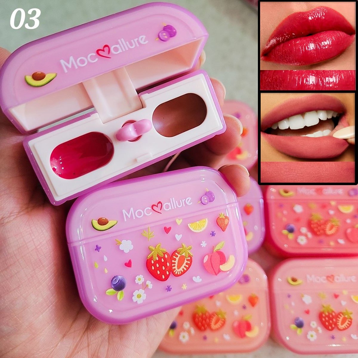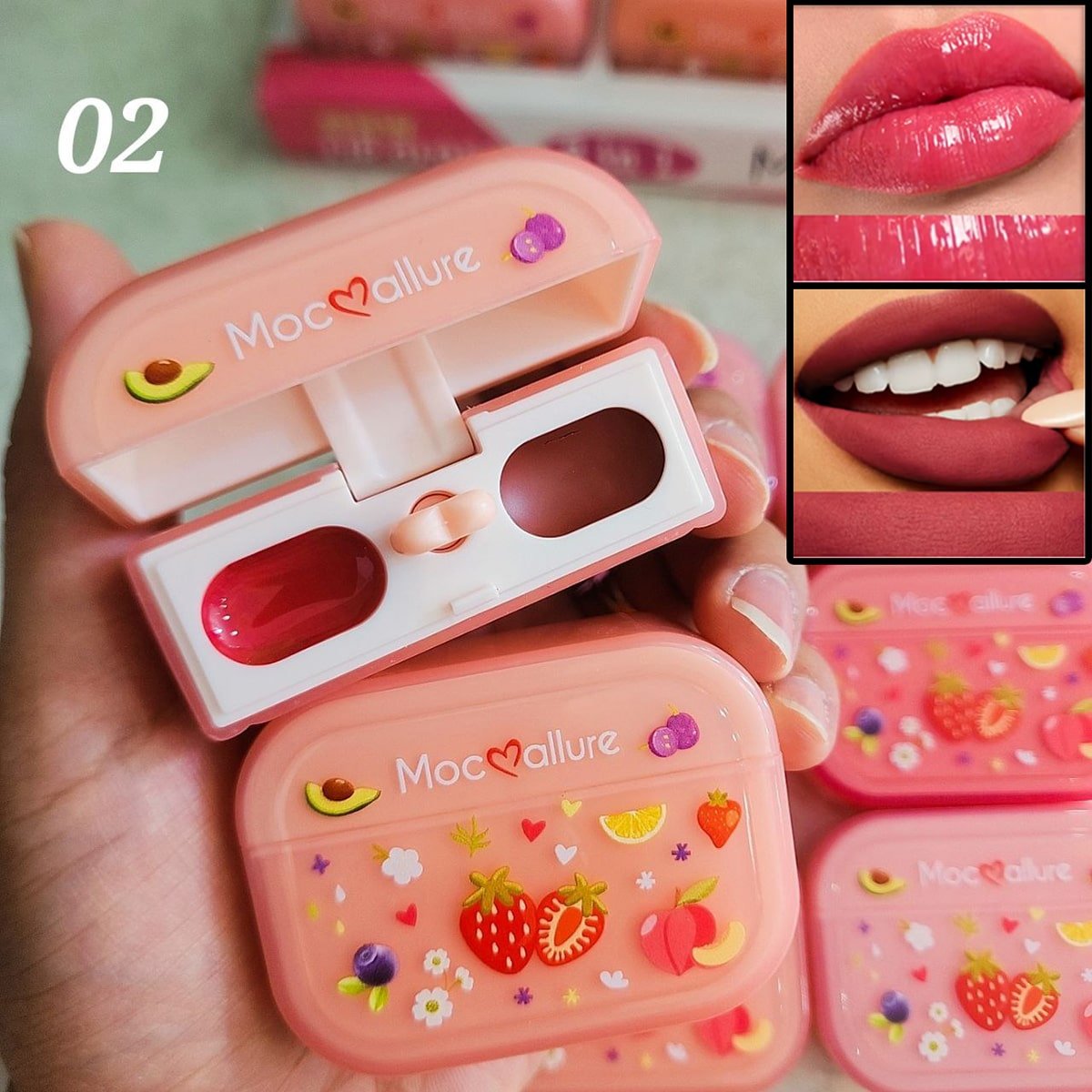 If you are looking for a different, fresh and fragrant lipstick, **Mocallure Original Fruit Airpods Lipstick** is your best choice! This lipstick with a luxurious Airpod-shaped design (a stylish and minimal case) will add an attractive and special look to your makeup bag. Inside the case, several different fruity colors are waiting for your lips.