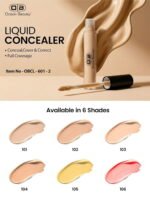 Achieve a smooth, flawless look with our lightweight liquid concealer, available in 6 versatile shades to suit every skin tone. It effectively covers blemishes, dark circles, and imperfections while feeling comfortable and breathable on the skin.