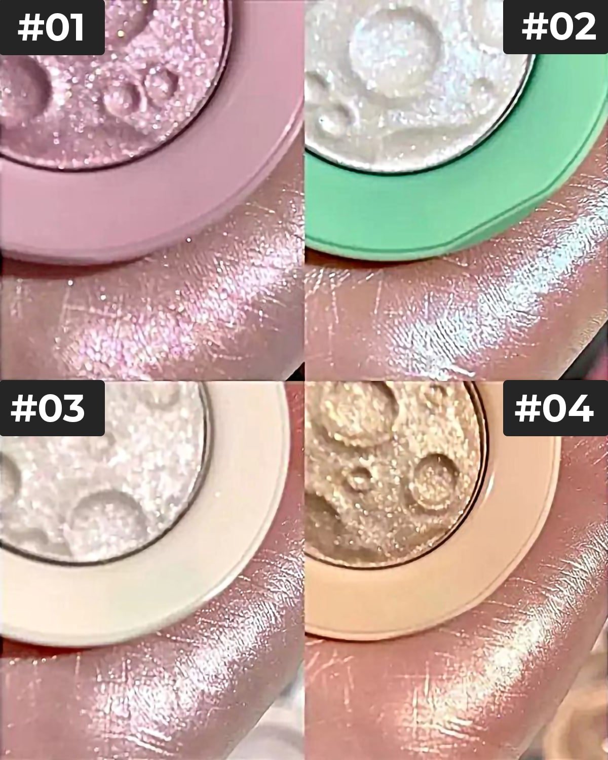 Multiple Finish Options – Available in rose-gold shimmer, pearl glow, holographic cool tones, and matte shades for versatile makeup looks.