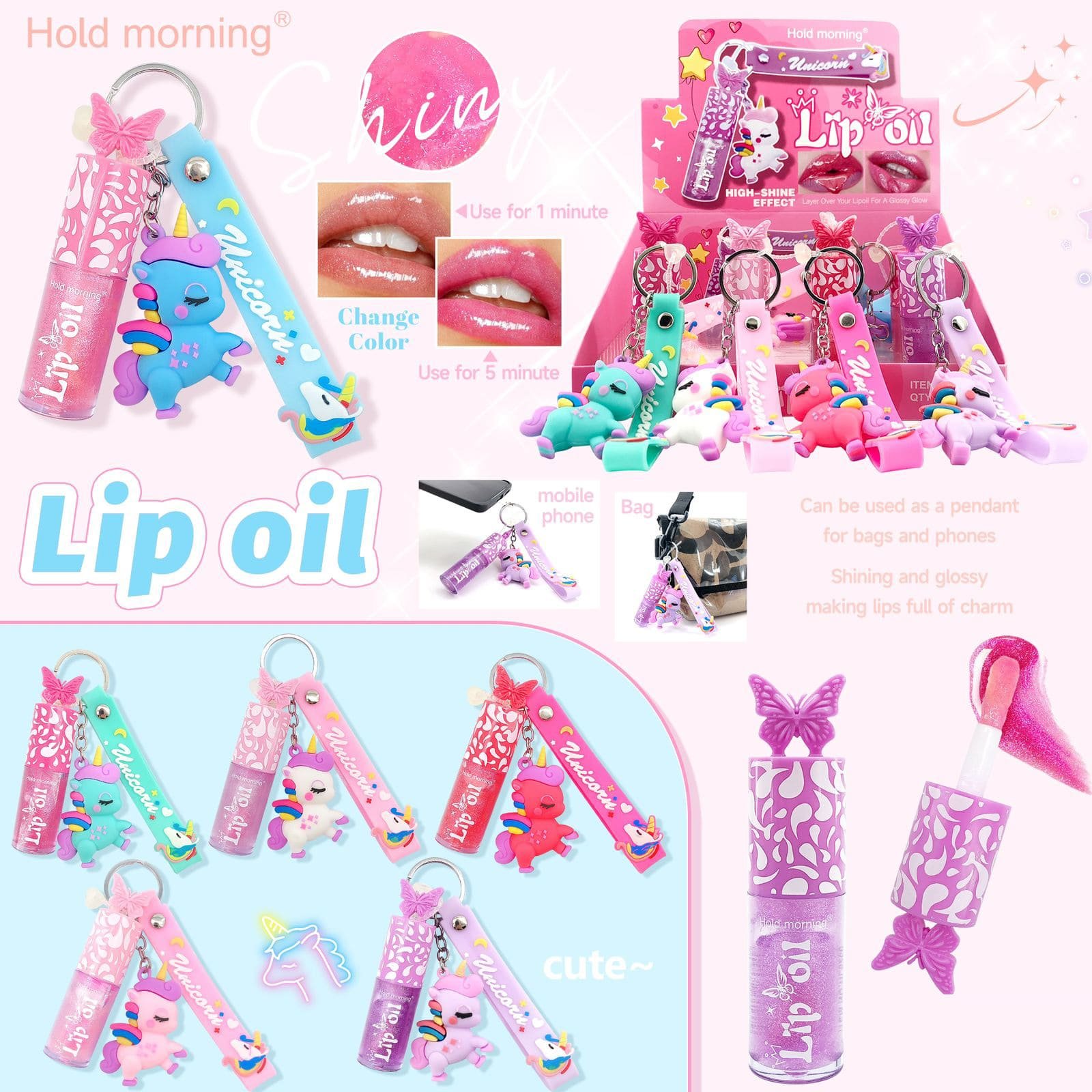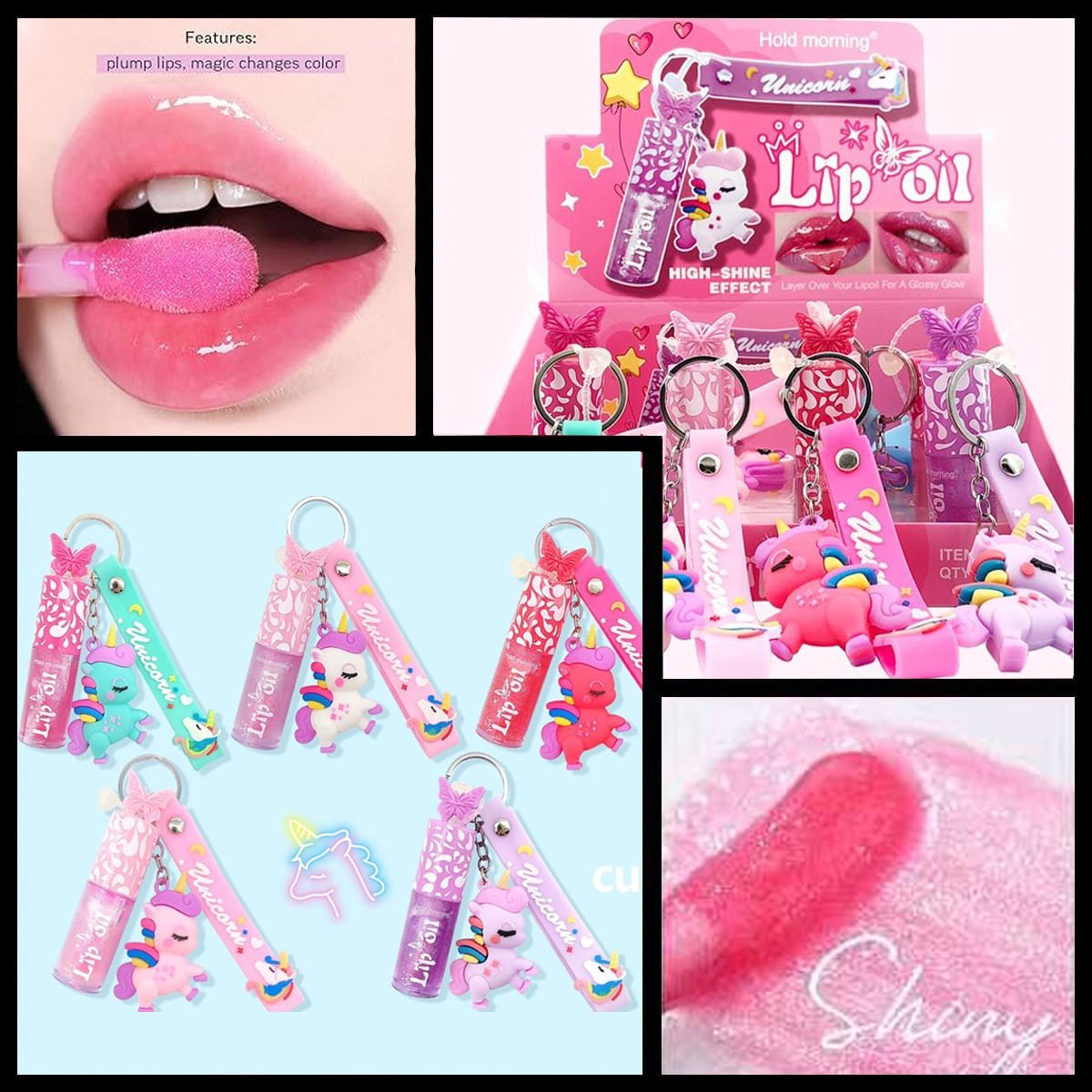 Designed with an adorable unicorn charm and keychain, it can be easily attached to bags, purses, or phones—perfect for on-the-go use. Cute, glossy, and hydrating, this lip oil is ideal for daily wear and gifting.